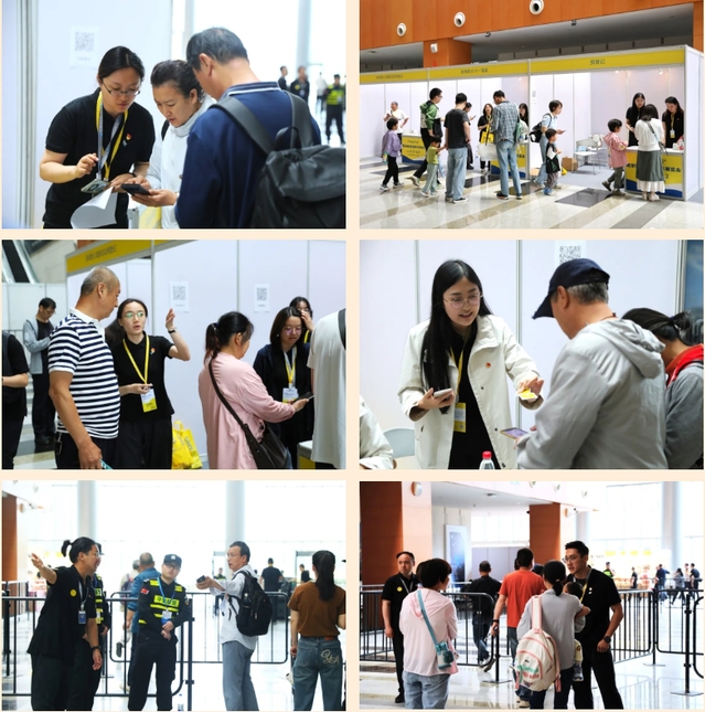 党员突击队成员们身着统一制服,精神饱满地投入各项支援工作。在现场登记处,他们热心引导观众扫码登记入场,无论是手机操作不熟悉,还是扫码过程中出现的技术问题,他们都能细心解答,让观众感受到省心和贴心;在入场核验处,他们严格执行入场规定,维护展会秩序,确保展会安全有序进行;在服务指引时,他们为参展商和观众提供热情周到的服务,耐心解答疑问,主动提供帮助;在现场调研时,他们认真收集反馈意见,为今后的展会工作提供有力支持;馆内党员先锋示范区还同时提供信息咨询、失物招领、应急充电服务以及应急药箱和免费饮用水等物资,多措并举为前来参观的群众营造良好的观展体验。