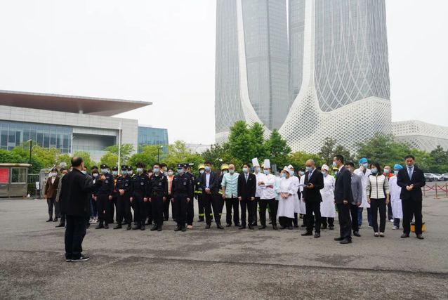 南京国际博览中心酒店全体员工集体参与了消防演练。此次演练分为安全疏散、医疗救护和灭火演练三个部分。