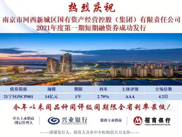 南京市河西新城区国有资产经营控股(集团)有限责任公司(以下简称“hy5900cc海洋之神”)成功发行2021年度第一期短期融资债券。