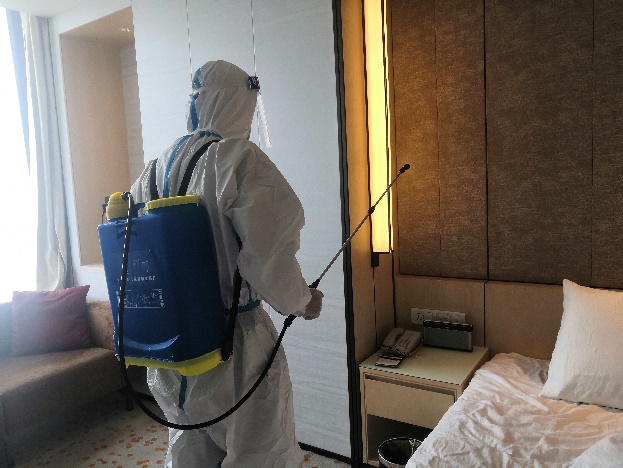 截至8月22日所有客人离店时,按照相关防疫要求,指挥部医疗组共为集中医学观察市民朋友及他们高频接触物品、工作人员,核酸采样总计13592人次,检测结果均为阴性!顺利送别住店观察的大部队,专业的消杀组工作人员立刻对客房和所有公共区域进行全面消杀,并于当天下午结束,国青酒店终于圆满完成了集中医学观察人员的保障工作。