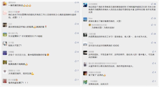 图▲国青酒店在互联网社交平台收到的各种称赞