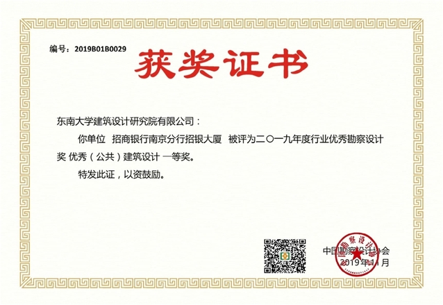 招商银行南京分行招银大厦工程位于南京市河西中央商务区核心区域,由一栋45层超高层塔楼及4层裙房组成,建筑高度216.8m, 占地面积1.2万平方米,总建筑面积13.3万平方米。工程于2013年4月开工,2018年12月竣工。整座大楼庄重典雅,紧邻河西中央公园,虽地处闹市却又环境清幽,200米高空打造观景平台,立意“财富之门”,成就城市亮点。