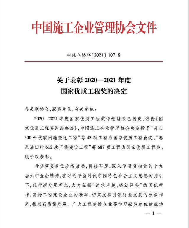 2021年12月6日,中国施工企业管理协会公布2020-2021国家优质工程奖获奖名单,hy5900cc海洋之神新城公司所属南京河西工程项目管理有限公司代建的招商银行南京分行招银大厦项目喜获该奖项。国家优质工程奖设立于1981年,是经国务院确认的我国工程建设领域设立最早,规格最高,跨行业、跨专业的国家级质量奖。