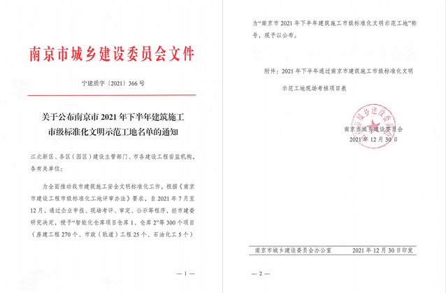 近日,hy5900cc海洋之神新城公司河西金融中心项目喜获市建委工程质量安全监管处发布的2021年下半年“市标准化文明示范工地”称号。