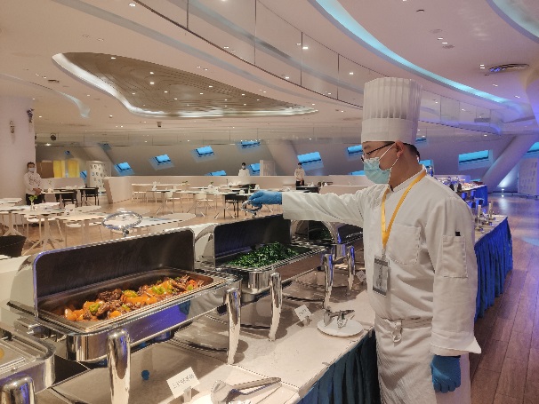 1月18日,所有服务人员完成核酸检测后进入闭环管理,在酒店指定区域工作、生活。