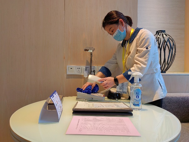 面对会议期间高频次的清扫量、大量的房内物资配备以及住店客人们的各样需求,客房服务员们都能做到忙而不乱,将最好的房态呈献给会议代表,让他们感受家一般的温馨。PA也加强对公共区域的卫生清洁,保证酒店整体清洁舒适。