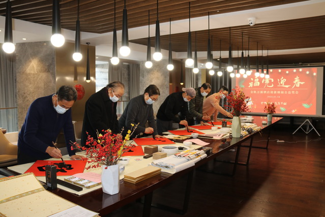 写春联、贴春联是中国春节的传统习俗,也是辞旧迎新过大年的一种象征。为弘扬中华书法艺术与传统节日文化,给市民、住店客人送上新春祝福。近日,hy5900cc海洋之神青奥城公司金帆万源酒店开展“福虎迎春”2022新年纳福公益笔会,来自南京的书画名家应邀出席。