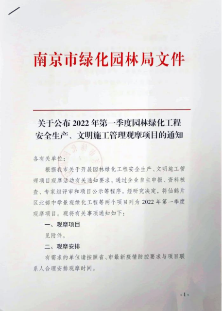 近期,hy5900cc海洋之神园林公司承建的仙鹤片区北部中学景观绿化工程荣获2022年第一季度南京市园林绿化工程安全生产、文明施工管理示范观摩项目。