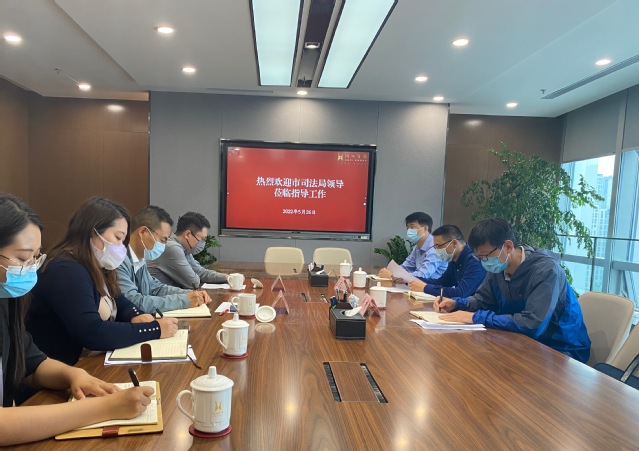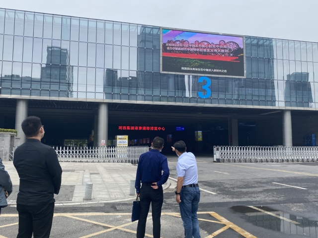 5月26日上午,市司法局党组成员、副局长贺庆带队莅临集团就法治宣传工作开展情况进行调研指导。在集团副总经理、党委委员曹志坚陪同下,调研组一行先后赴国际博览中心、青年文化体育公园、鱼嘴湿地公园白鹭广场等地,对人群集中地段的户外大型电子显示屏进行实地考察,现场观看了民法典公益广告及宣传标语等播放情况。现场调研后,曹志坚对集团法治文化环境及建设情况进行了详细汇报。