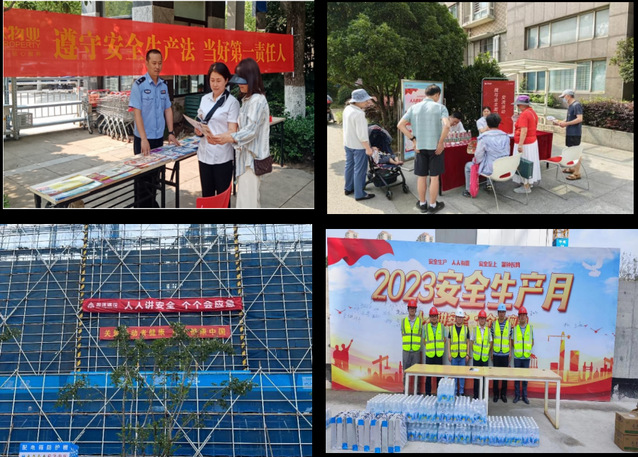 结合今年“安全生产月”的主题,集团通过一系列宣传活动把“安全生产月”的要求和精神传导到基层,组织下属公司策划了多个深入基层一线、群众喜闻乐见的宣传活动。物业公司举办讲座6场,悬挂横幅48条,布置海报架或张贴海报33张,派发宣传单800余份,持续不断增强活动影响力,形成了阶段性宣传热潮;紫金商管公司成立义务宣传小组,重点在社区中心、商业街区、装修工地悬挂横幅10余幅,现场发放安全生产小贴士、消防逃生小知识、灭火器使用方法等安全知识宣传册共计500余份;新城公司设计制作了安全生产管理宣传单以及现场应急救援知识折页,将安全生产防范知识传递到每个项目、每个工人。